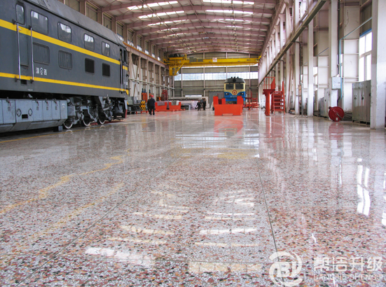 格爾木機務段新建年檢修庫在做高強升級水磨石定制前,貴段領導在進行多方面比較后,對原有設計方案進行變更為機輛高強升級水磨石地坪。貴段